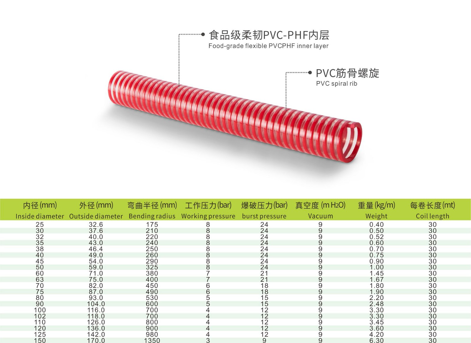 PVC-PHF软管,硬质PVC筋骨螺旋。