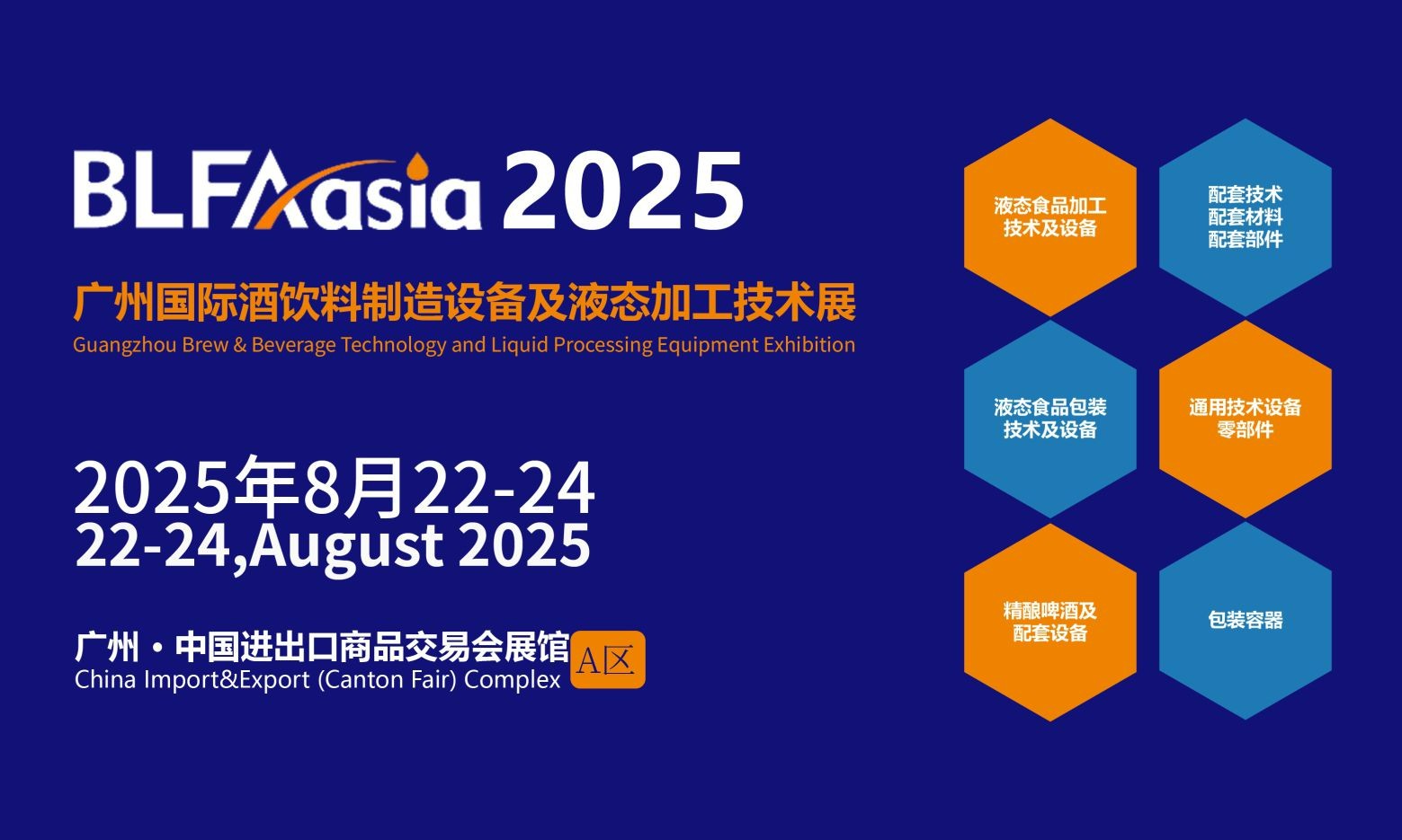 BLFAasia2025广州国际酒饮料制造设备及液态加工技术展览会(以下简称:“BLFAasia”)展会于2025年8月22-24日在粤港澳大湾区核心城市广州隆重举行。是专注于酒、饮料、乳品、调味品等液态加工及包装领域的上下游行业盛会,与FPackAsia包装展/广博会同期举办,上下游产业链无缝对接。